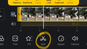अगर आप के वीडियो में कुछ Extra Part आ गया तो उसे कैसे Cut कर के Delate करेंगे सबसे पहले आप को अपने Video Clip को सेलेक्ट करना होगा फिर जहां से आप को video cut करना है वहा पे वीडियो रोक देना होगा