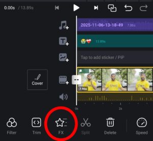 सबसे पहले आप को अपने clip को सलेक्ट करना होगा नीचे में एक ( FX ) का option मिलेगा उसपे क्लिक करना होगा